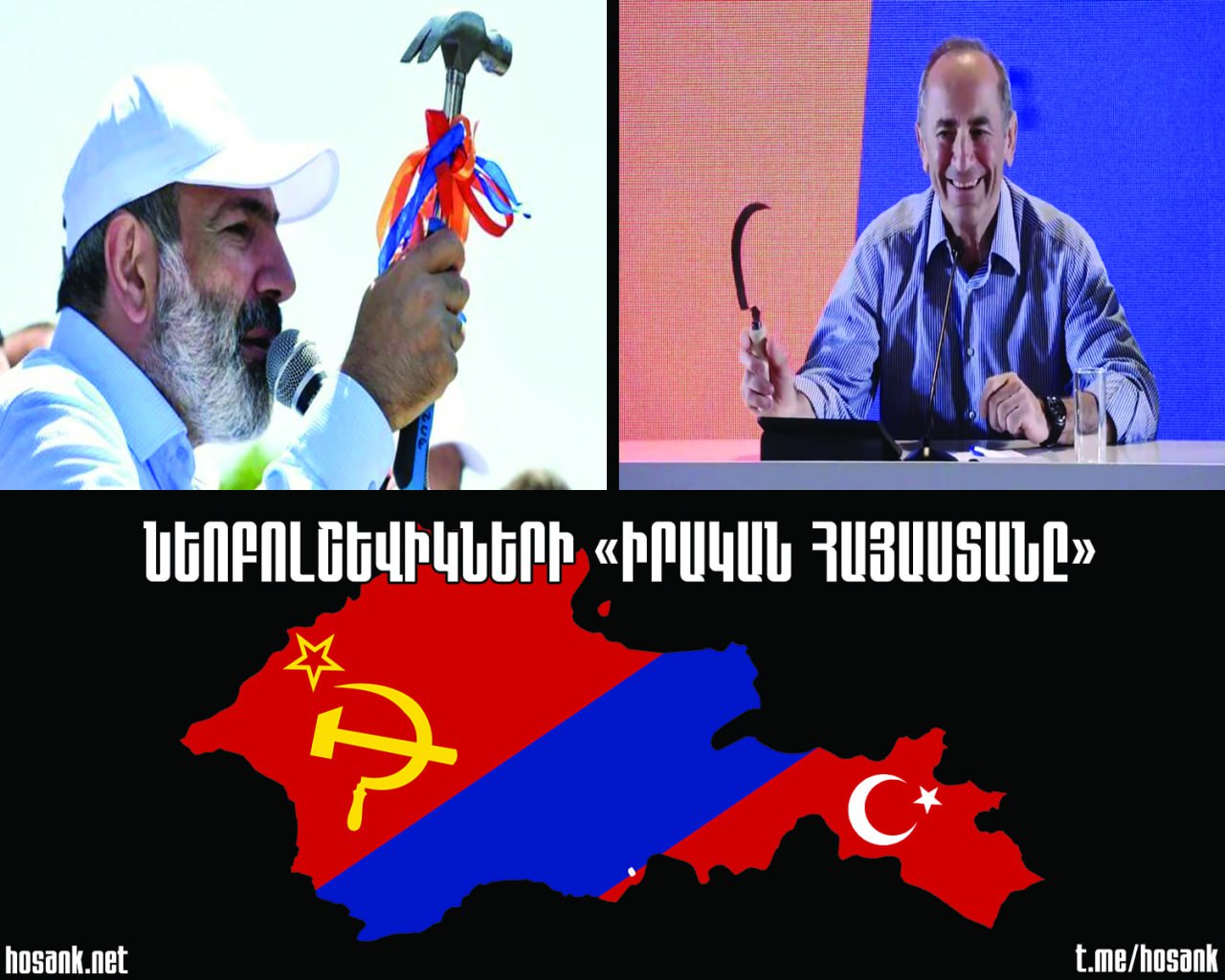 Լիքը հայեր կարծում են, թե միայն Փաշինյանի դեմ պայքարելով և «ընդդիմությանը» աջակցելով կարող են Հայաստանը «փրկել» թրքացումից, քանի որ նա «հակառուս» է կամ վարում է «հակառուսական» քաղաքականություն, իսկ Ռուսաստանի հետ մերձ լինելը մեզ կփրկի «վիլայեթ» դառնալու ճակատագրից։ Բայց սա պարզապես մեծ թյուրիմացություն է և մանիպուլյացիա։ Նախ սկսենք նրանից, որ Փաշինյանի անդադար շեշտած «Իրական Հայաստանը» հենց սովետական բոլշևիկյան կամ այս դարում՝ նեոբոլշևիկյան Հայաստանն է, որտեղ չկա ո՛չ Արցախ, ո՛չ էլ անկախություն։ Գերագույն վիժվածքը Ազգային ժողովում արտասանեց հետևյալ դավաճանական խոսքերը. «Շատ են խոսում այն մասին, թե մենք կորցրել ենք Լեռնային Ղարաբաղը։ Այս հարցի մասին շատ եմ մտածել, և իմ եզրակացությունը հետևյալն է. մենք ոչ թե կորցրել ենք Լեռնային Ղարաբաղը, այլ գտել ենք Հայաստանի Հանրապետությունը։ Սա է ճշմարտությունը»։ Նրա և կեղծ ընդդիմության տեսանկյունից սա ճիշտ է, քանի որ իրենց համար Հայաստանի Հանրապետությունը ոչ թե պետք է լինի ինքնիշխան ու անկախ՝ Արցախն ամբողջությամբ ընդգրկելով, այլ՝ Արցախից զուրկ և Ռուսաստանի կազմի մեջ։ Դրա համար էլ ամենևին պատահական չէր ուղիղ չորս տարի առաջ՝ 2021 թ․ խորհրդարանական խայտառակ կրկեսային ընտրություններում (որն անցկացվեց 44-օրյա դավադիր պատերազմի ավարտից ու Արցախի կորստից հետո) օգտագործված սիմվոլիկան, երբ Փաշինյանը ցուցադրեց մուրճ, Քոչարյանը՝ մանգաղ, իսկ Սերժ Սարգսյանը՝ հինգկողմանի աստղ... Եթե իրապես կարծում եք, որ Ռուսաստանի կազմի մեջ մտնելով մենք Հայաստանը «կփրկենք» թրքացումից, ապա չարաչար սխալվում եք, քանի որ ճշմարտությունն ամբողջովին հակառակն է։ Ռուսաստանի հետ նոր Միութենական միության մեջ մտնելը կլինի Հայաստանը թրքացնելու ամենաարագ ու հեշտ ձևը, որովհետև նման մղձավանջային պայմաններում ռուսներն ու թուրքերը կբաժանեն Հայաստանը՝ հայ ազգին ոչ միայն զրկելով անկախ պետականությունից, այլև որևէ անգամ ռազմաքաղաքական գործոն դառնալու հնարավորությունից։ Մեզ համար միակ իրական Հայաստանը՝ անկախ, միացյալ, հզոր Հայաստանն է, որը ազատված է ռուս-թուրքական վանդակից։ Այն Հայաստանը, որն իր մեջ կընդգրկի, ոչ միայն Արցախն ամբողջությամբ, այլև հայկական լեռնաշխարհի մեծամասնությունը, որովհետև դրան ձգտելը մեր ցեղի ոգու բաղձանքն է ու ճակատագրի կանչը։ Մեկ Ազգ, Մեկ Պետություն, Մեկ Կամք Ոչնչացրո՛ւ նեոբոլշևիզմը