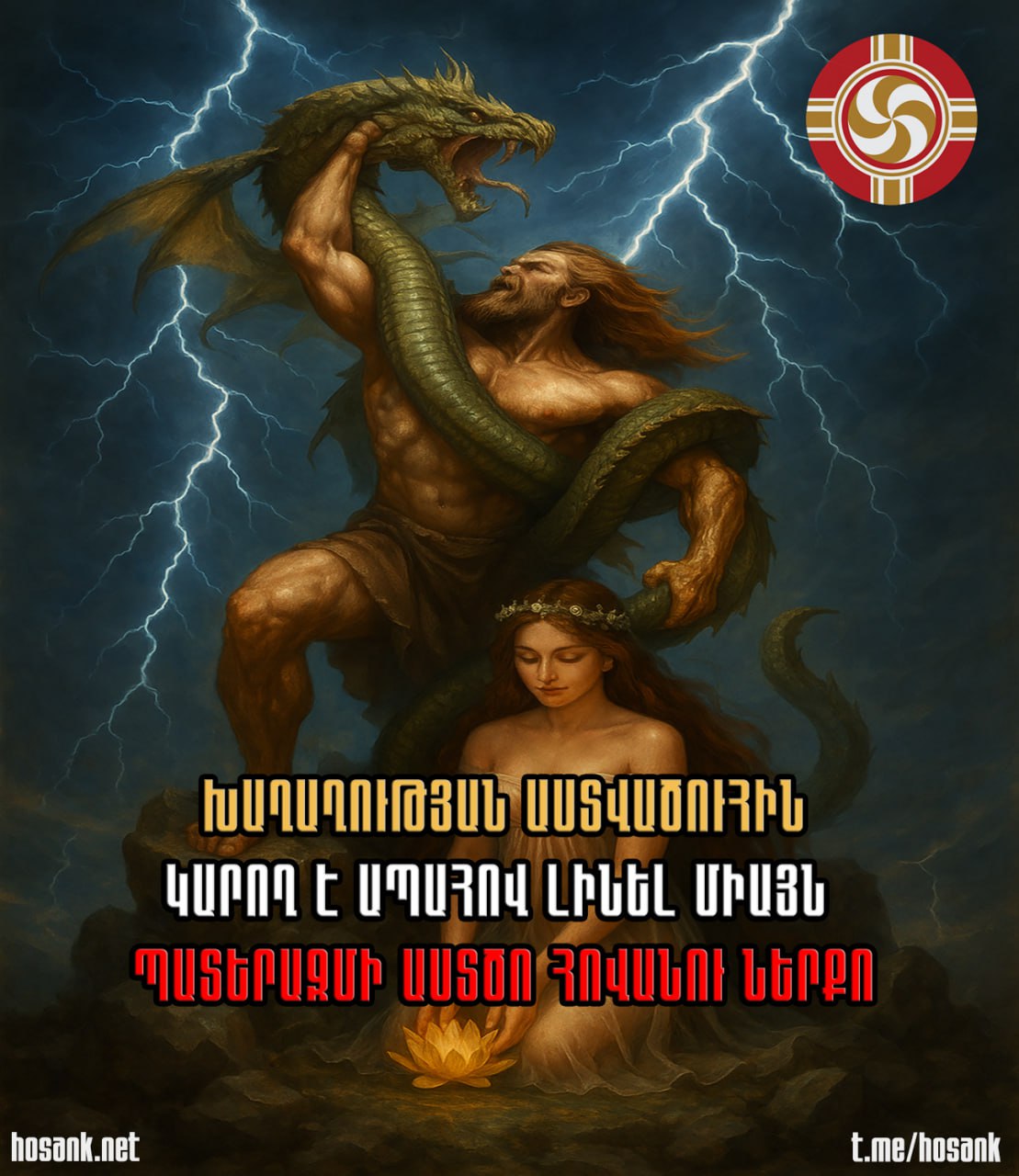 Յուրաքանչյուր դարում Հայ ազգը ձգտել է խաղաղության, բայց խաղաղությունը առանց ուժի՝ ավազի վրա կառուցված երազ է։ Իրական խաղաղությունը չի ծնվում թուլությունից, այլ պահպանվում և երաշխավորվում է նրանց կողմից, ովքեր պատրաստ են այն պաշտպանել ուժով, քրտինքով ու արյամբ։ Ինչպես Խաղաղության Աստվածուհին ապահով է մնում միայն Պատերազմի Աստծո հովանու ներքո, այնպես էլ մեր ազգը պետք է իր ապագան ապահովի վճռական և անզիջող պայքարով։ Մենք չենք փառաբանում պատերազմը՝ մենք փառաբանում ենք ռազմիկների կամքն ու ոգին, որովհետև հենց դա է, որ կարող է կյանքի կոչել իրական խաղաղություն։ Յուրաքանչյուր դարում մեր ժողովուրդը այս ճշմարտությունը սովորել է անթիվ զոհաբերությունների և արյունալի կռիվների ճանապարհը անցնելով։ Երբ մեր թշնամիները գրոհում էին Հայոց աշխարհի վրա, մենք չփրկվեցինք դատարկ խոսքերով, այլ մեր հերոս նախնիների ձեռքներին բռնած զենքերով։ Խաղաղության Աստվածուհին կանգնած է խաղաղ, որովհետև Պատերազմի Աստվածը պահպանում է նրան ստվերից։ Դա սուրբ հավասարակշռություն է՝ քանզի խաղաղությունը առանց ուժի մոլորություն է, իսկ ուժը՝ առանց իրական խաղաղություն կերտելու նպատակի՝ կործանում։ Միասին նրանք ձևավորում են մեր ազգի հավերժական զարկերակը, որը երբեք չի դադարում բաբախել։ Այսօր, երբ նորից մրրիկներ են կուտակվում մեր Հայրենիքի շուրջ, այս ճշմարտությունը առավել քան երբևէ արդիական է դառնում։ Մենք չենք փնտրում պատերազմ, բայց երբեք չենք խոնարհվի նրանց առաջ, ովքեր այն բերում են մեր սահմաններին։ Մենք հավատում ենք խաղաղությանը՝ բայց այն խաղաղությանը, որը պաշտպանվում է սրով ու խիզախությամբ, որովհետև միայն նրանք, ովքեր պայքարում են խաղաղության համար, իսկապես արժանի են դրան։